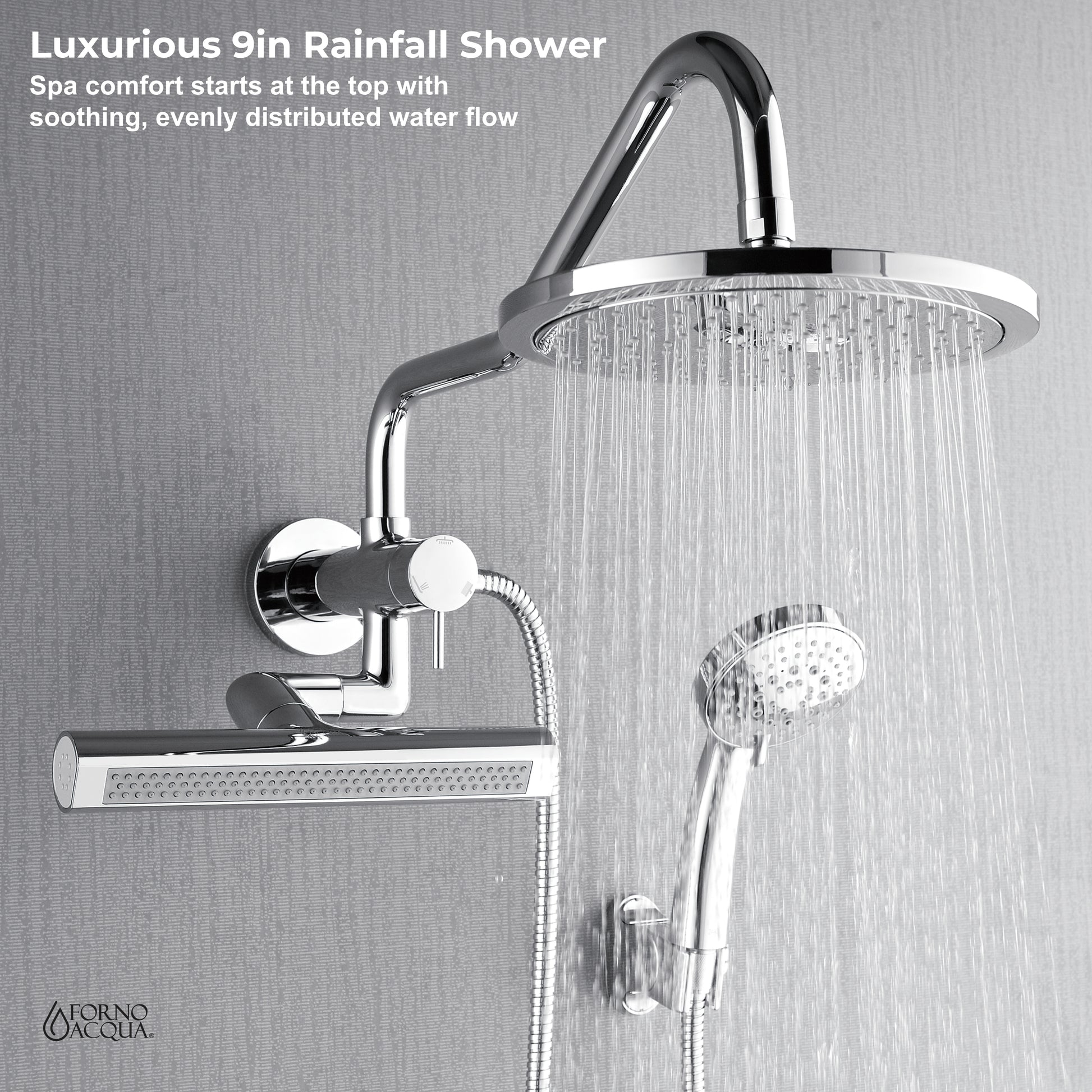 Forno Acqua AcquaFALL Mini Shower Head, Polished Stainless Steel Finish, Overhead Rainfall Shower, 7 Way Diverter, Handheld Shower Head, Body Jets, 1.8 GPM Flow Rate