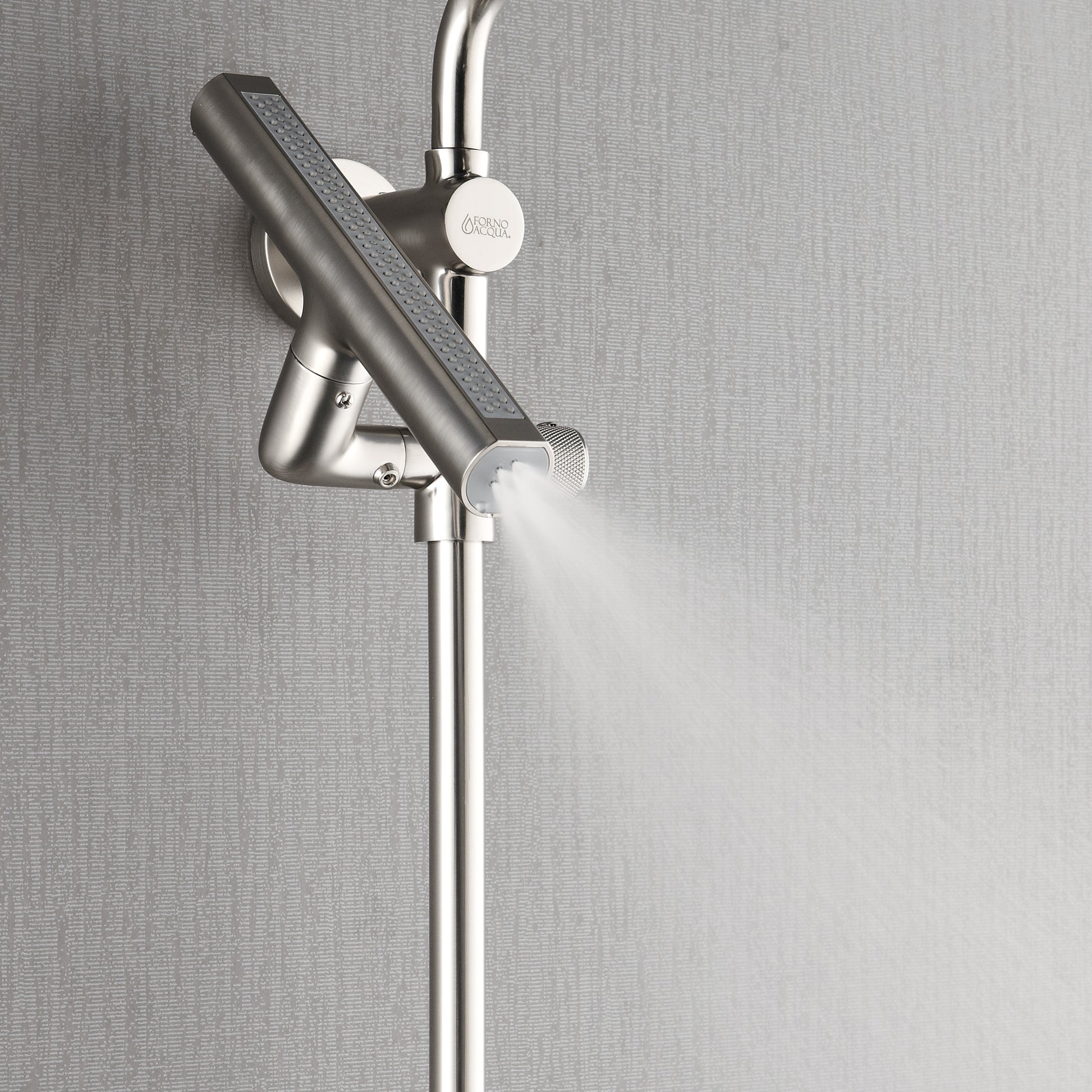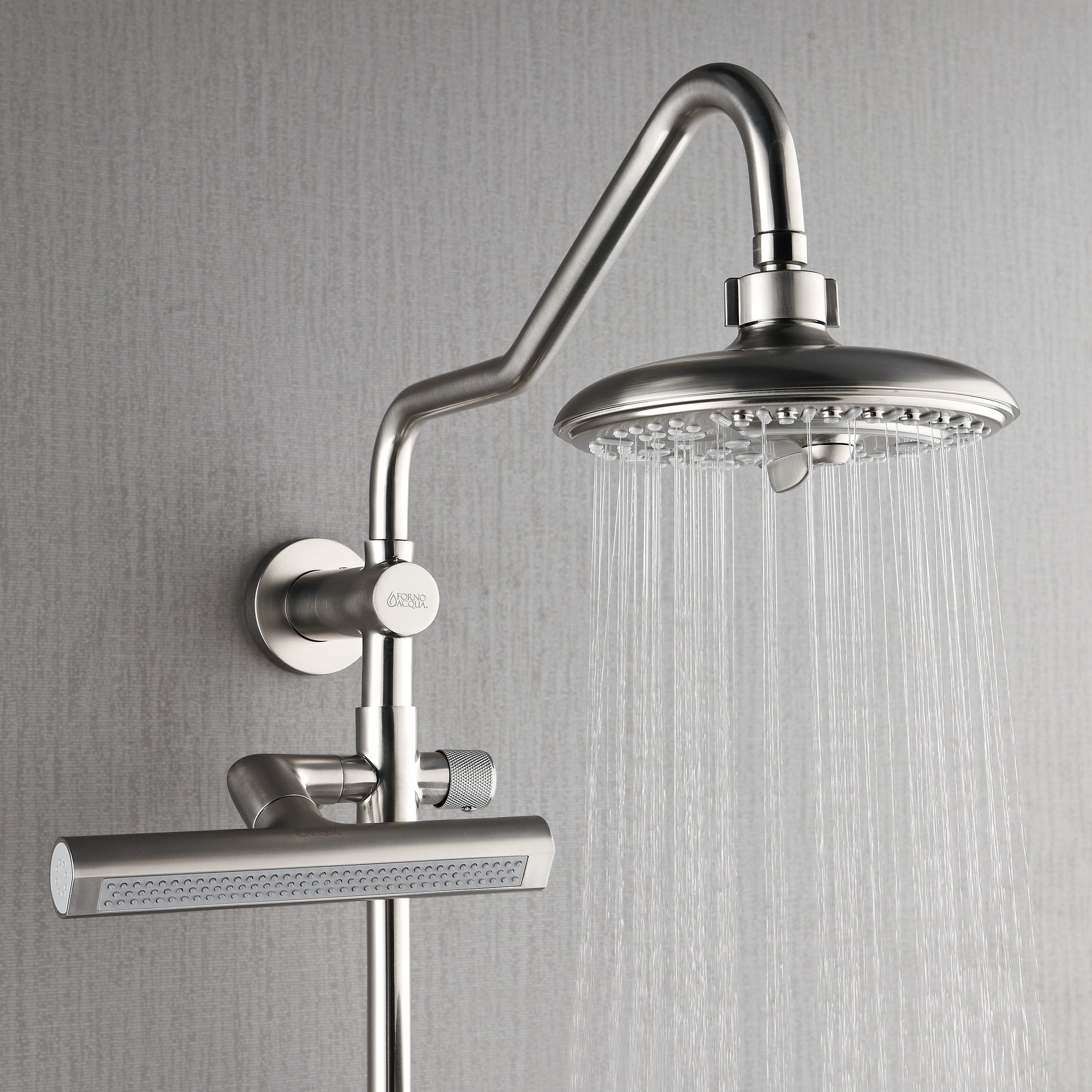 Forno Acqua AcquaFALL Shower, Brushed Nickel Finish, Overhead Rainfall Shower, 7 Way Diverter, Handheld Shower Head, Body Jets, 1.8 GPM Flow Rate