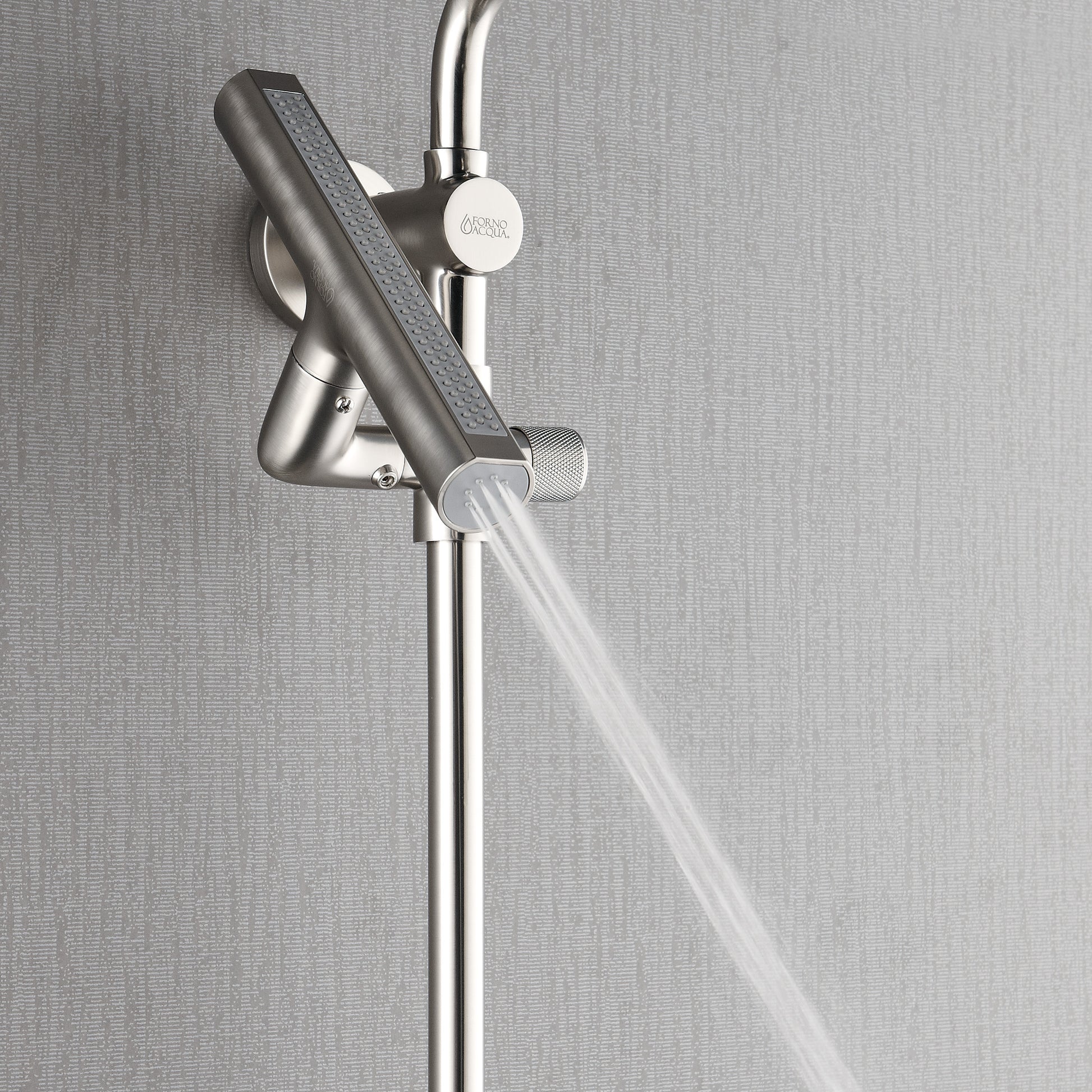 Forno Acqua AcquaFALL Shower, Brushed Nickel Finish, Overhead Rainfall Shower, 7 Way Diverter, Handheld Shower Head, Body Jets, 2.5 GPM Flow Rate
