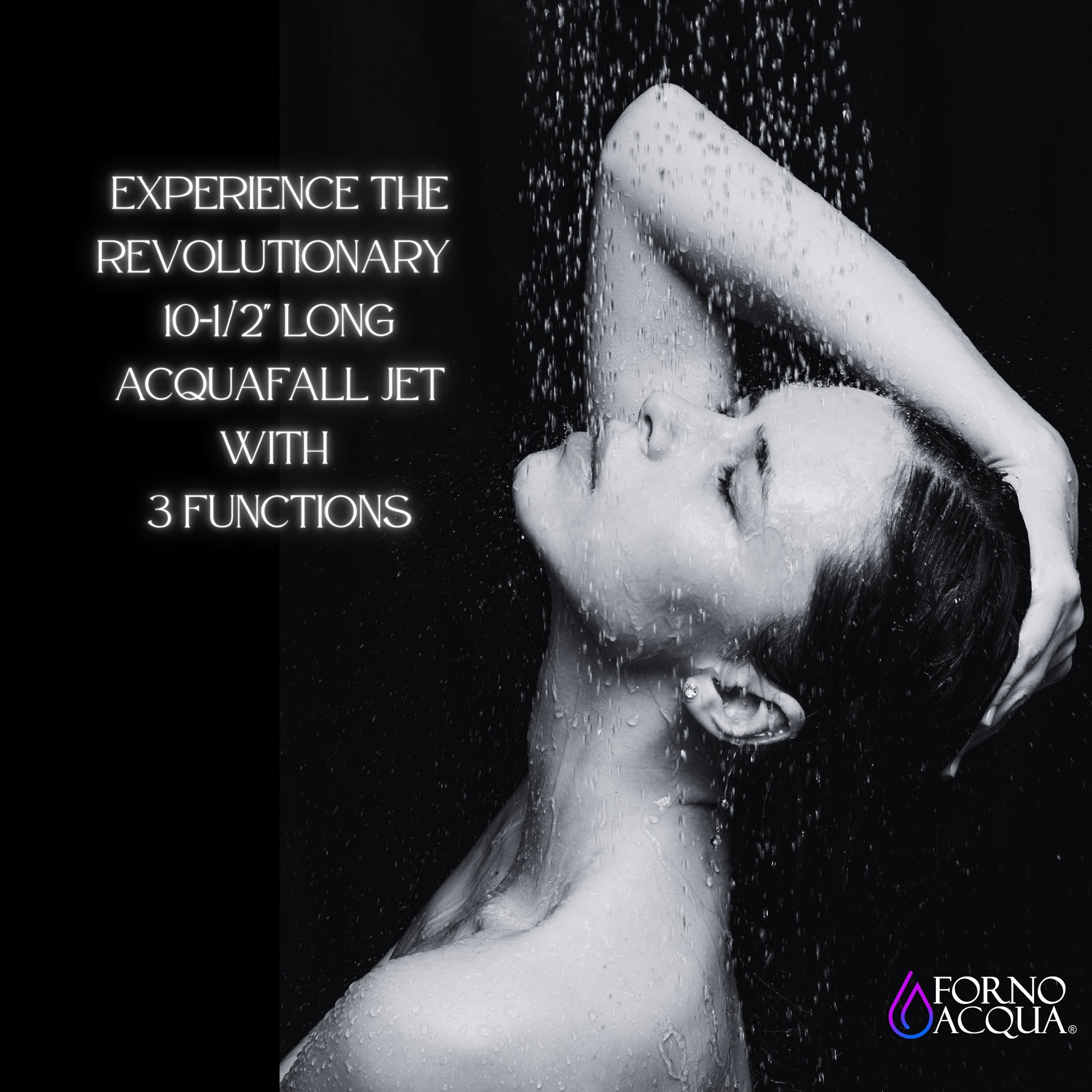 * Revolutionary 10-1/2 in. AcquaFALL Waterfall Jet with 3 Spray Modes: Choose from wide, gentle full body immersion experience or targeted sprays