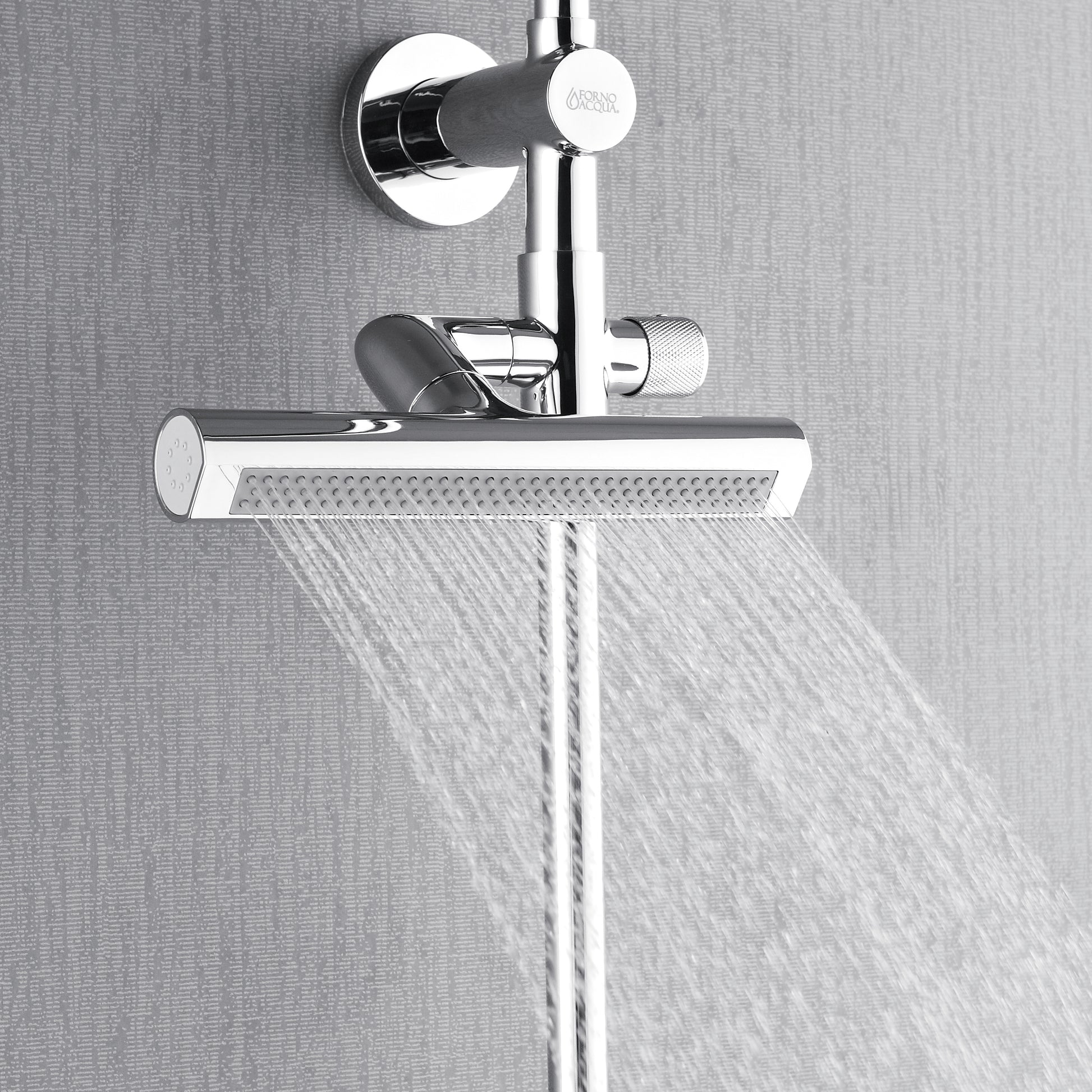 Forno Acqua AcquaFALL Shower, Polished Stainless Steel Finish, Overhead Rainfall Shower, 7 Way Diverter, Handheld Shower Head, Body Jets, 1.8 GPM Flow Rate