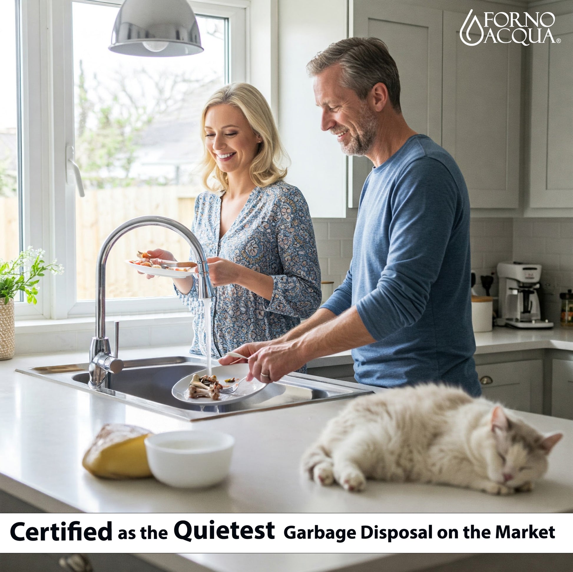 Upgrade your kitchen with the FORNO ACQUA Super Quiet Waste Disposer, a perfect blend of power, elegance, and advanced design. Featuring a permanent magnet motor, it delivers fast, efficient grinding for food waste while operating whisper-quiet for a more peaceful kitchen experience. The innovative BrightDIAMOND 270º Motion-Activated LED Cabinet Light surrounds your cabinet with a stunning cool blue glow, combining modern style with practical lighting to perform chores. Thoughtfully designed, it comes with a pre-wired air switch and plug-in cord, making installation a breeze and using it a pleasure. Built for performance and durability, FORNO ACQUA ensures your kitchen stays clean, functional, and sophisticated. Experience cutting-edge technology, premium craftsmanship, and a touch of brilliance. BrightDIAMOND where lighting and innovation meets garbage disposal excellence..