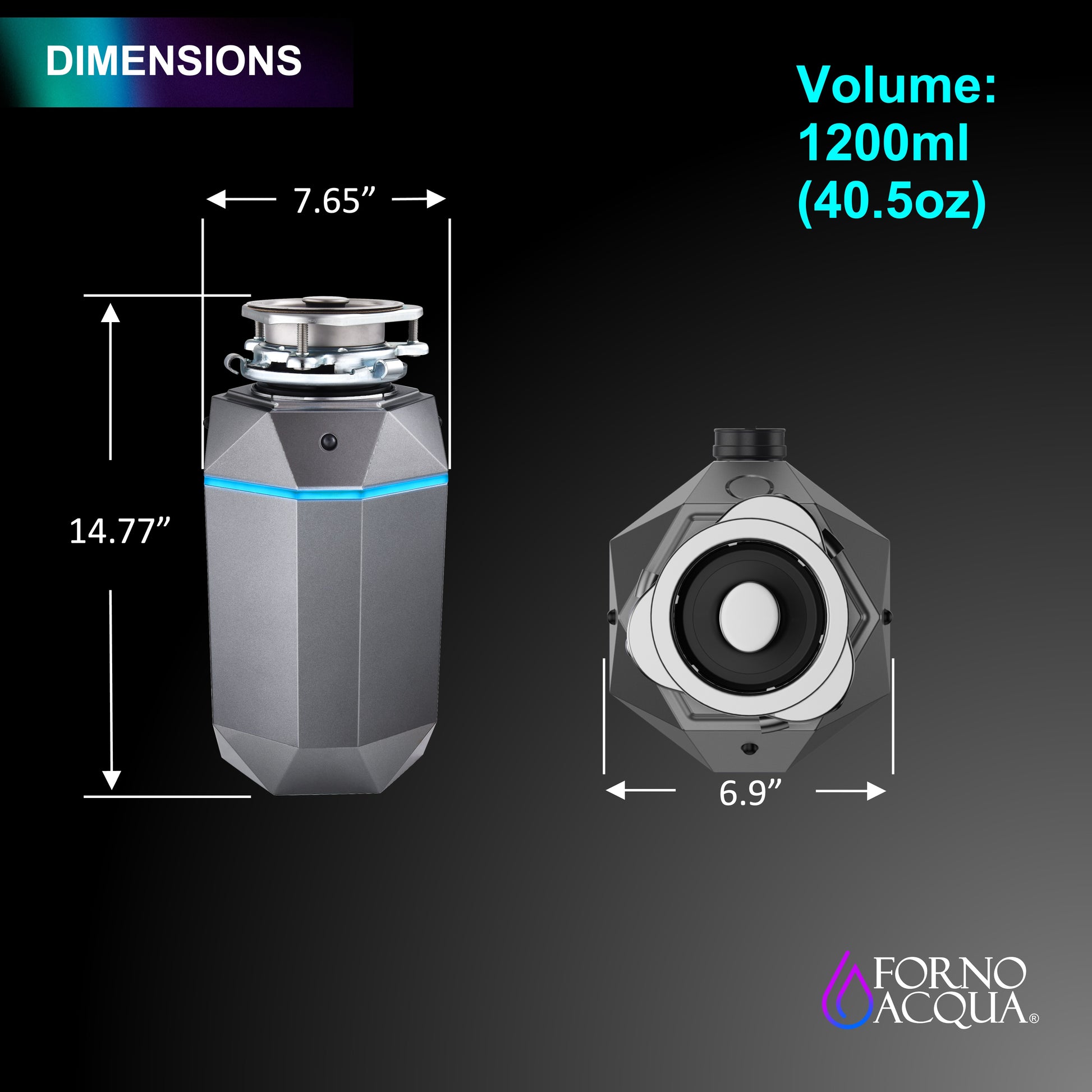 Upgrade your kitchen with the FORNO ACQUA Super Quiet Waste Disposer, a perfect blend of power, elegance, and advanced design. Featuring a permanent magnet motor, it delivers fast, efficient grinding for food waste while operating whisper-quiet for a more peaceful kitchen experience. The innovative BrightDIAMOND 270º Motion-Activated LED Cabinet Light surrounds your cabinet with a stunning cool blue glow, combining modern style with practical lighting to perform chores. Thoughtfully designed, it comes with a pre-wired air switch and plug-in cord, making installation a breeze and using it a pleasure. Built for performance and durability, FORNO ACQUA ensures your kitchen stays clean, functional, and sophisticated. Experience cutting-edge technology, premium craftsmanship, and a touch of brilliance. BrightDIAMOND where lighting and innovation meets garbage disposal excellence.