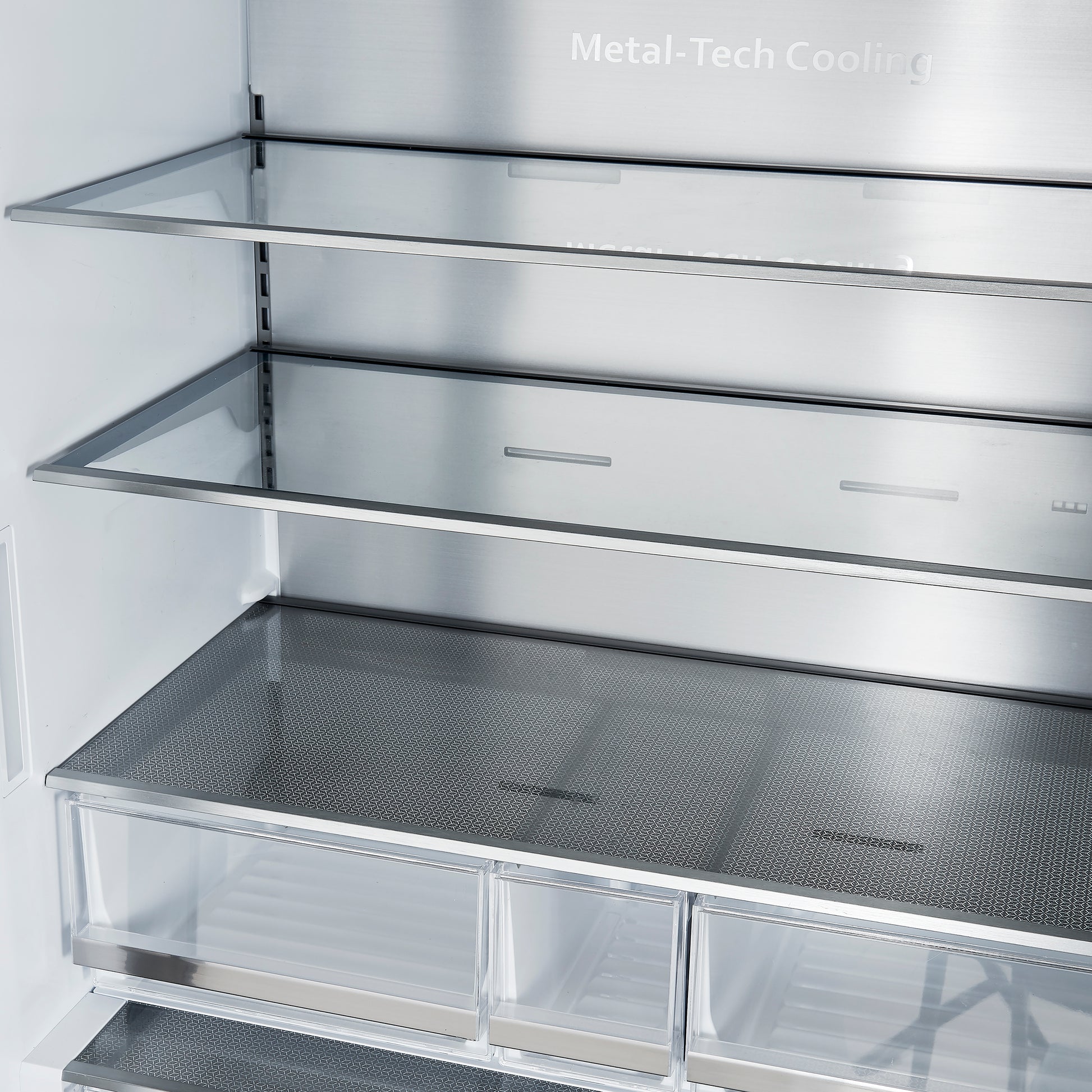 * The 3-tier metal glide drawers provide ample space for large frozen items, ensuring smooth, easy access and secure storage.