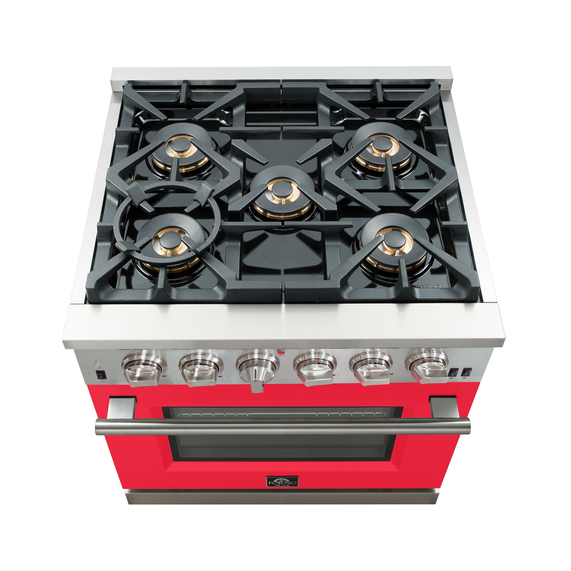 Forno Capriasca 30-Inch Freestanding Gas Range, 4 Burners, True Convection Oven, Red Door