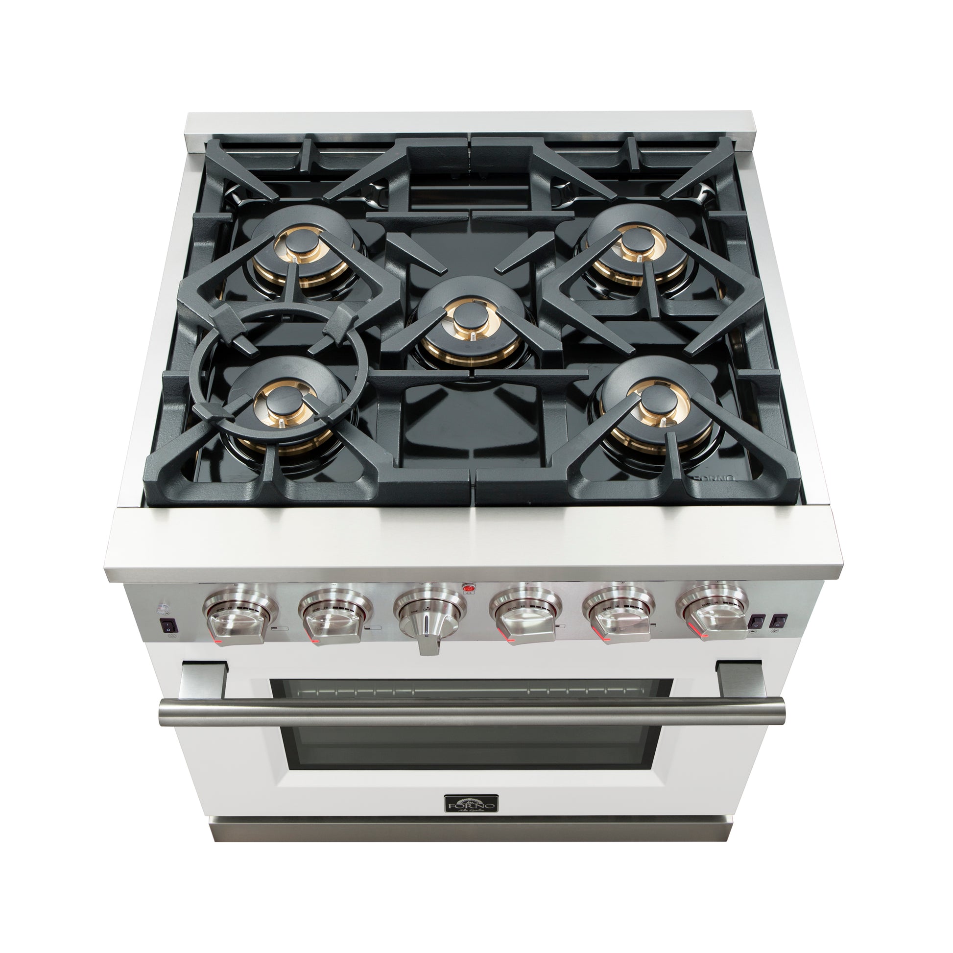 Forno Capriasca 30-Inch Freestanding Gas Range, 4 Burners, True Convection Oven, White Door