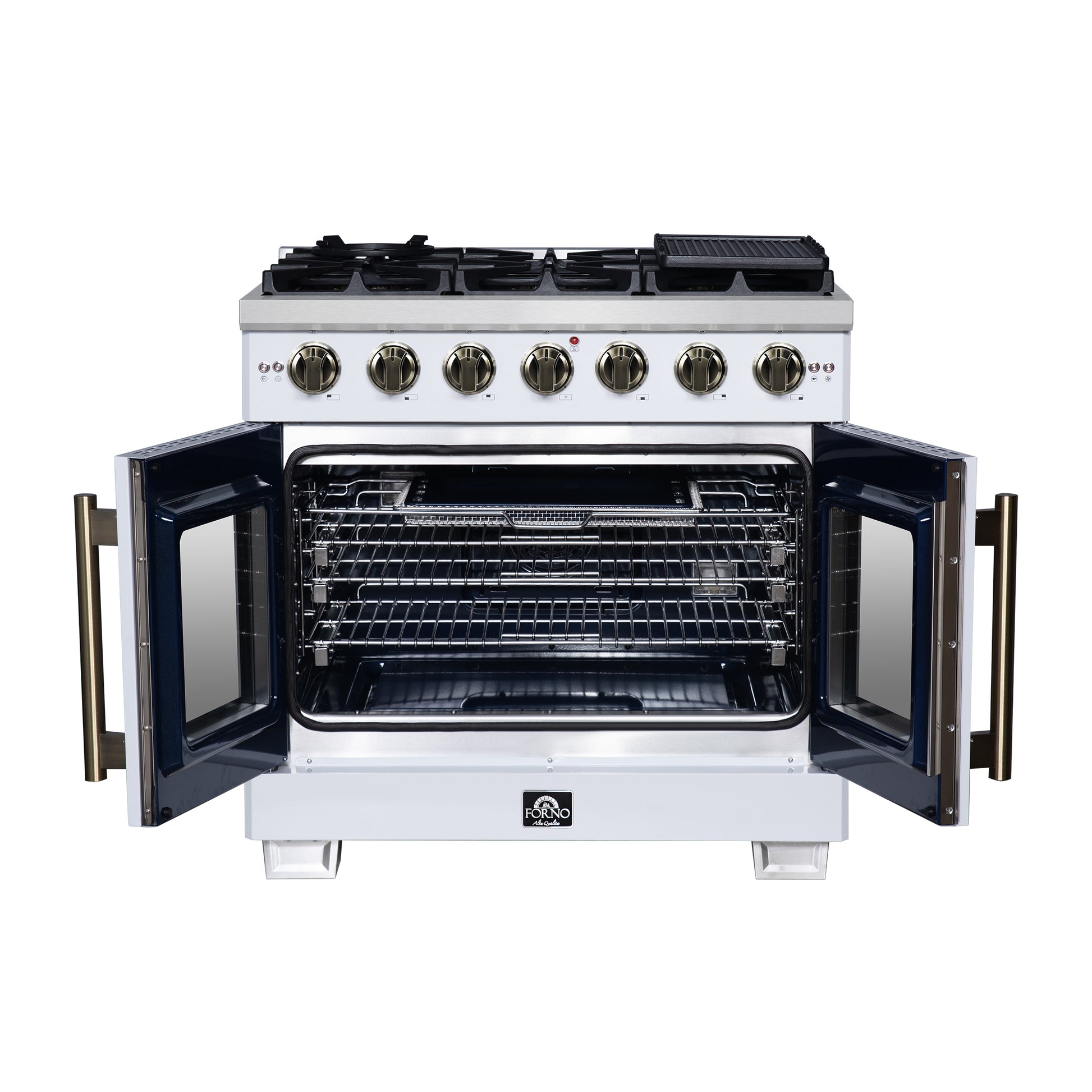 Forno Capriasca 36-Inch White Freestanding French Door Gas Range, 6 Burners, Convection Oven, Energy Efficient