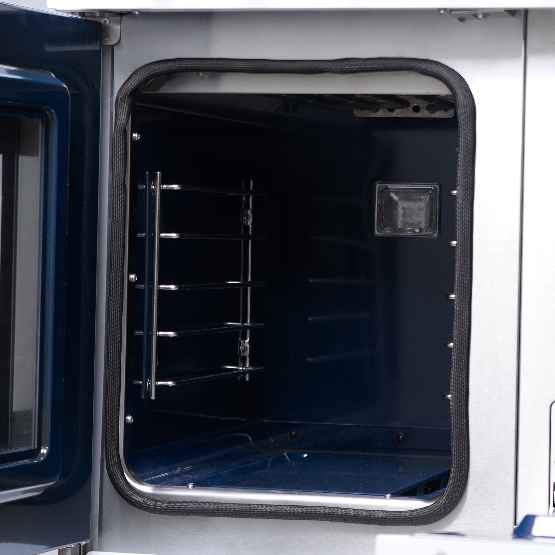 * French Door Design: Simplifies loading and unloading large dishes, improves oven accessibility, and reduces the risk of burns