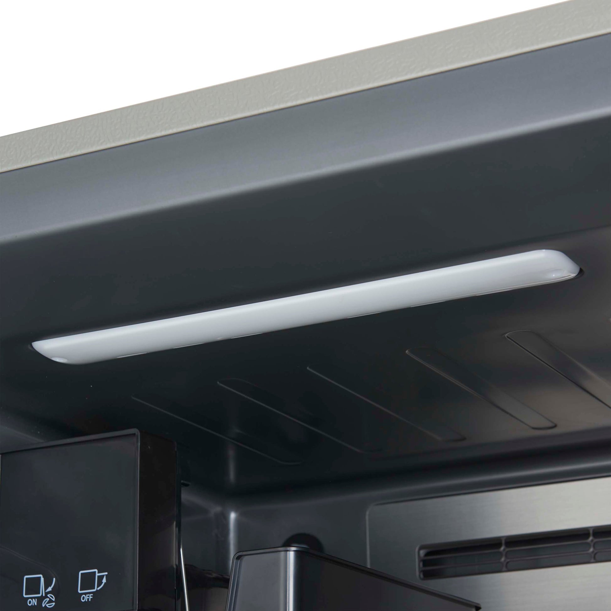 * Automatic Filtered Ice Maker: Built-in crescent-shaped ice maker produces clean, filtered ice on demand without manual refills.