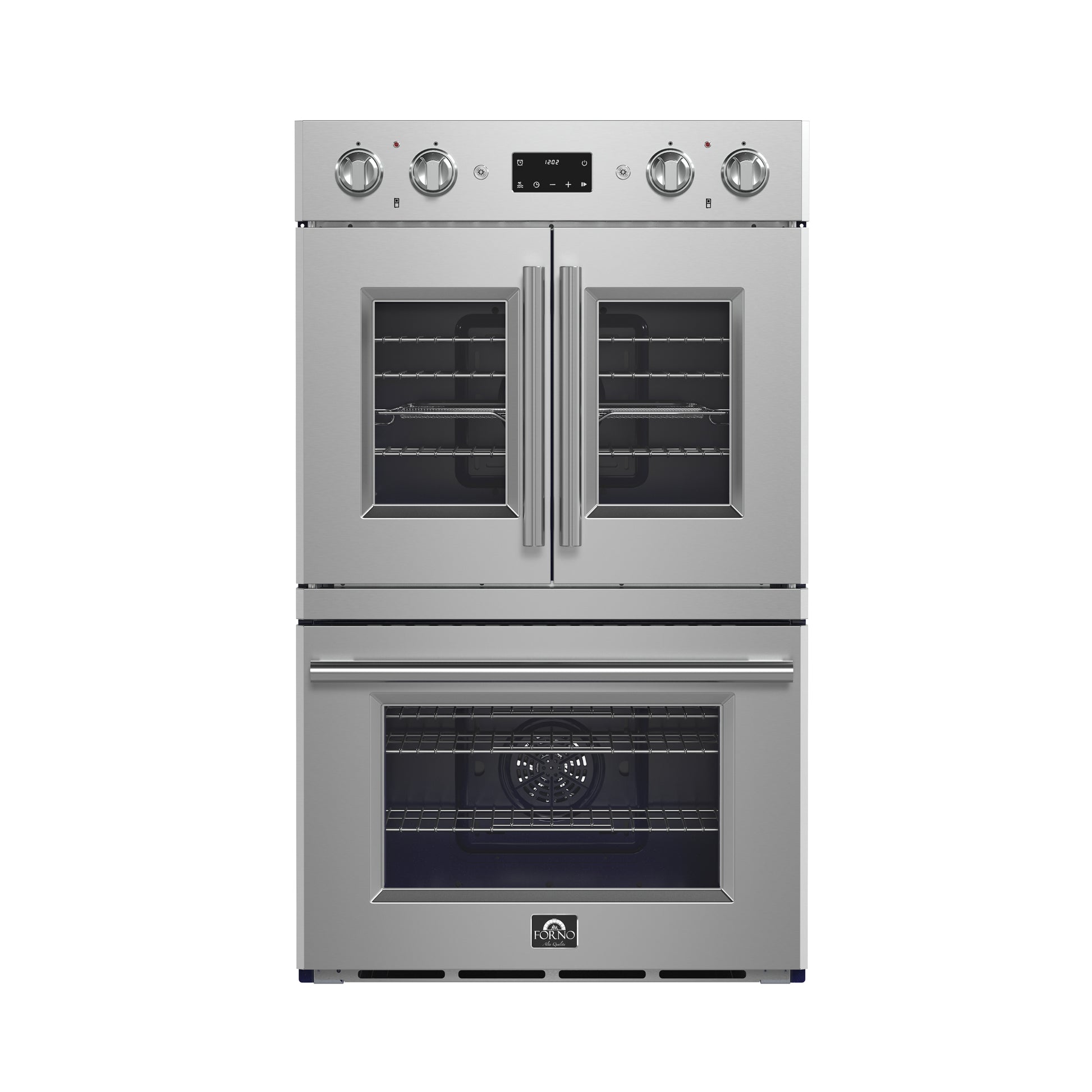 Forno Gallico 30-Inch Electric French Door Double Oven, Stainless Steel, Convection Cooking, Touch Control Panel, Self-Cleaning Function