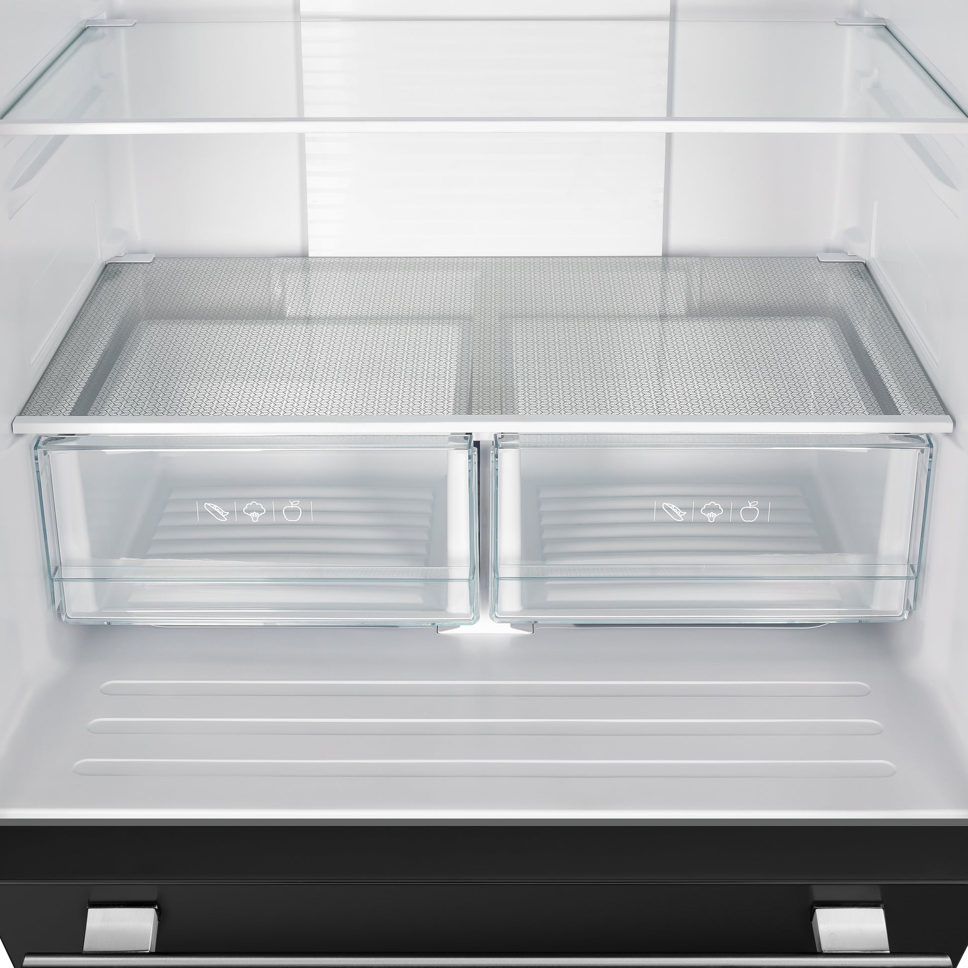 * The fresh food compartment is equipped with 3 glass shelves, 6 door bins, and 2 drawers.
