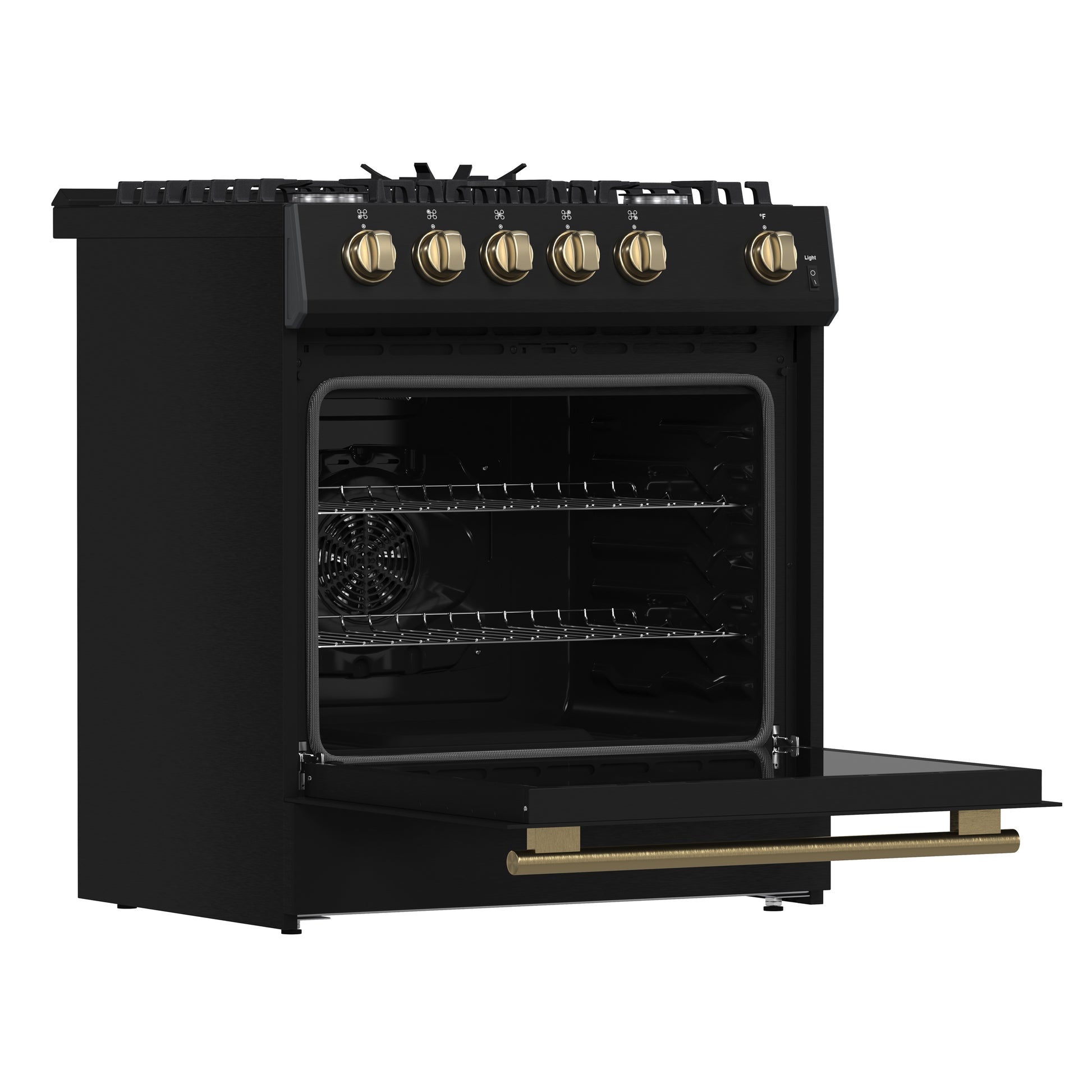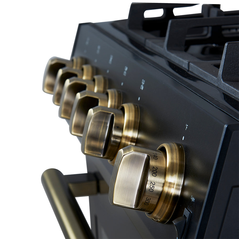 Forno Leonardo Espresso 30-Inch Black Gas Range, 5 Burners, 39,500 BTU, 5 cu.ft Convection Oven