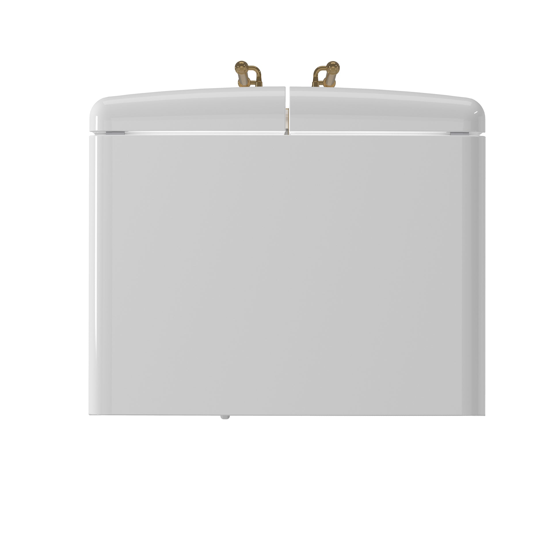 * Sleek white-finished doors with antique brass handles add a distinctive, stylish touch.