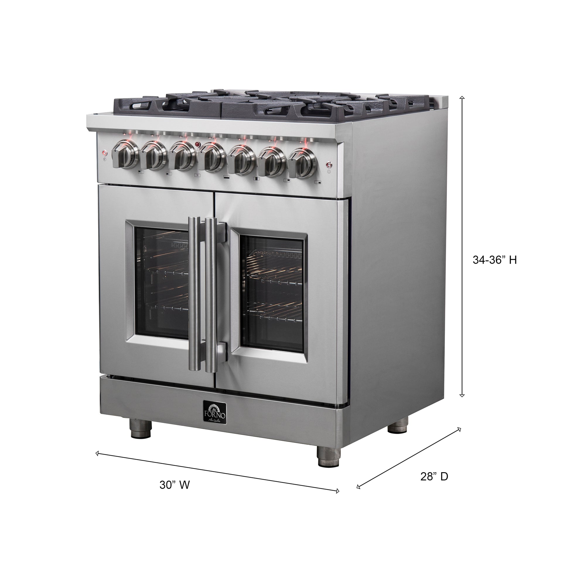 Forno Massimo 30-Inch Freestanding French Door Dual Fuel Range, 4 Burners, True Convection Oven