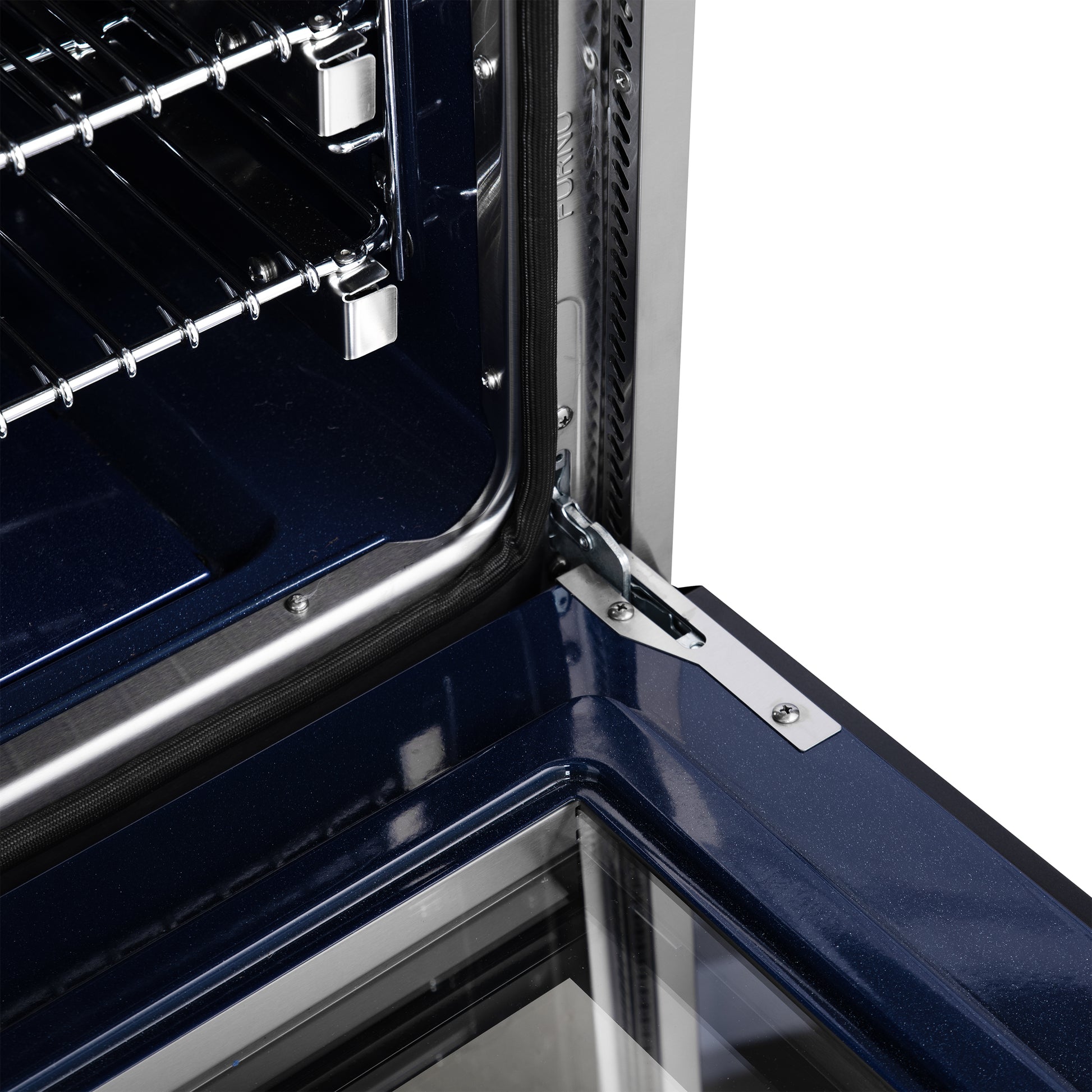 * Speckled blue enamel oven of 5.36 Cu.Ft with convection fan & 30,000 BTU Total Broil and Bake output