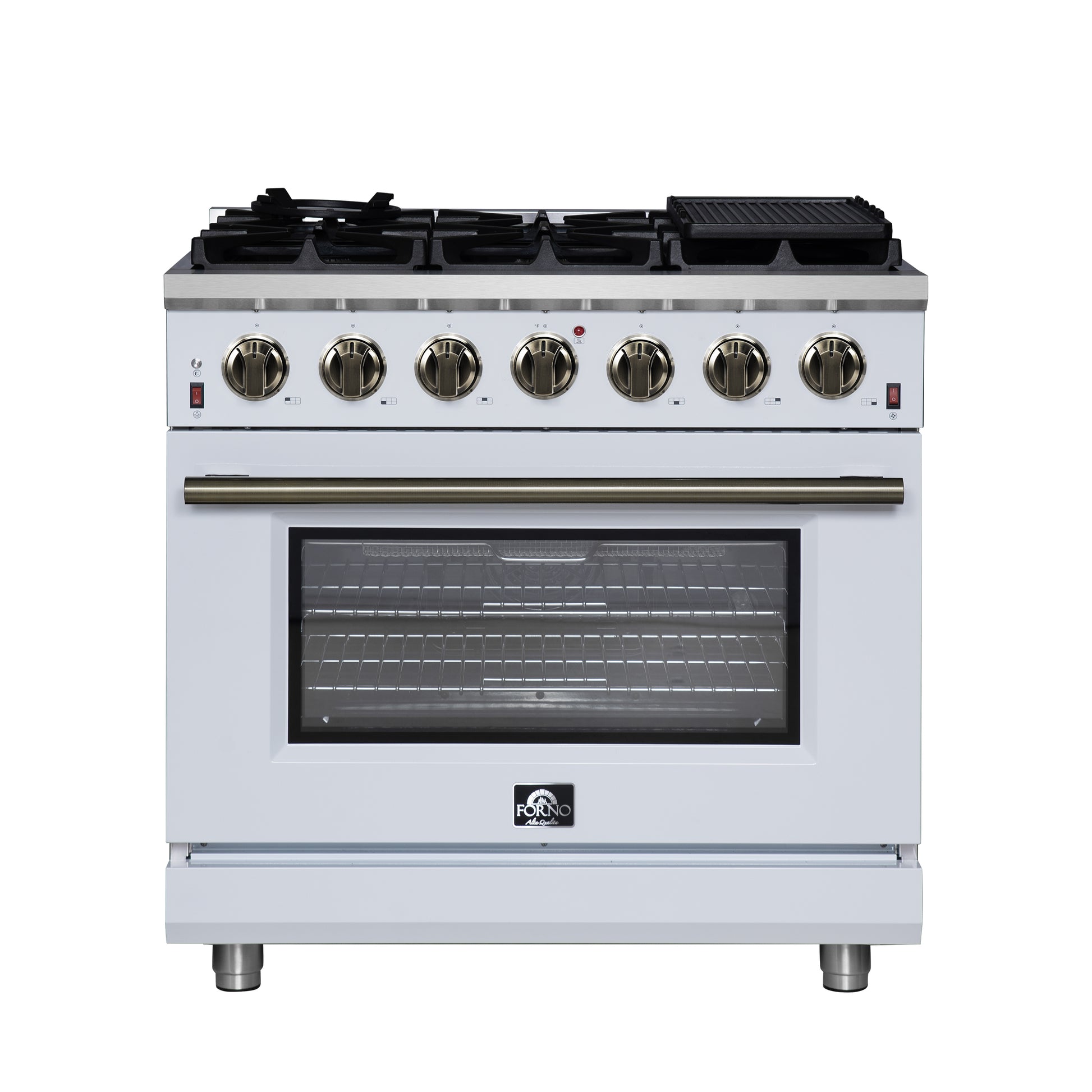 Forno Massimo 36-Inch White Freestanding Gas Range, 6 Sealed Burners, Convection Oven, Energy Efficient