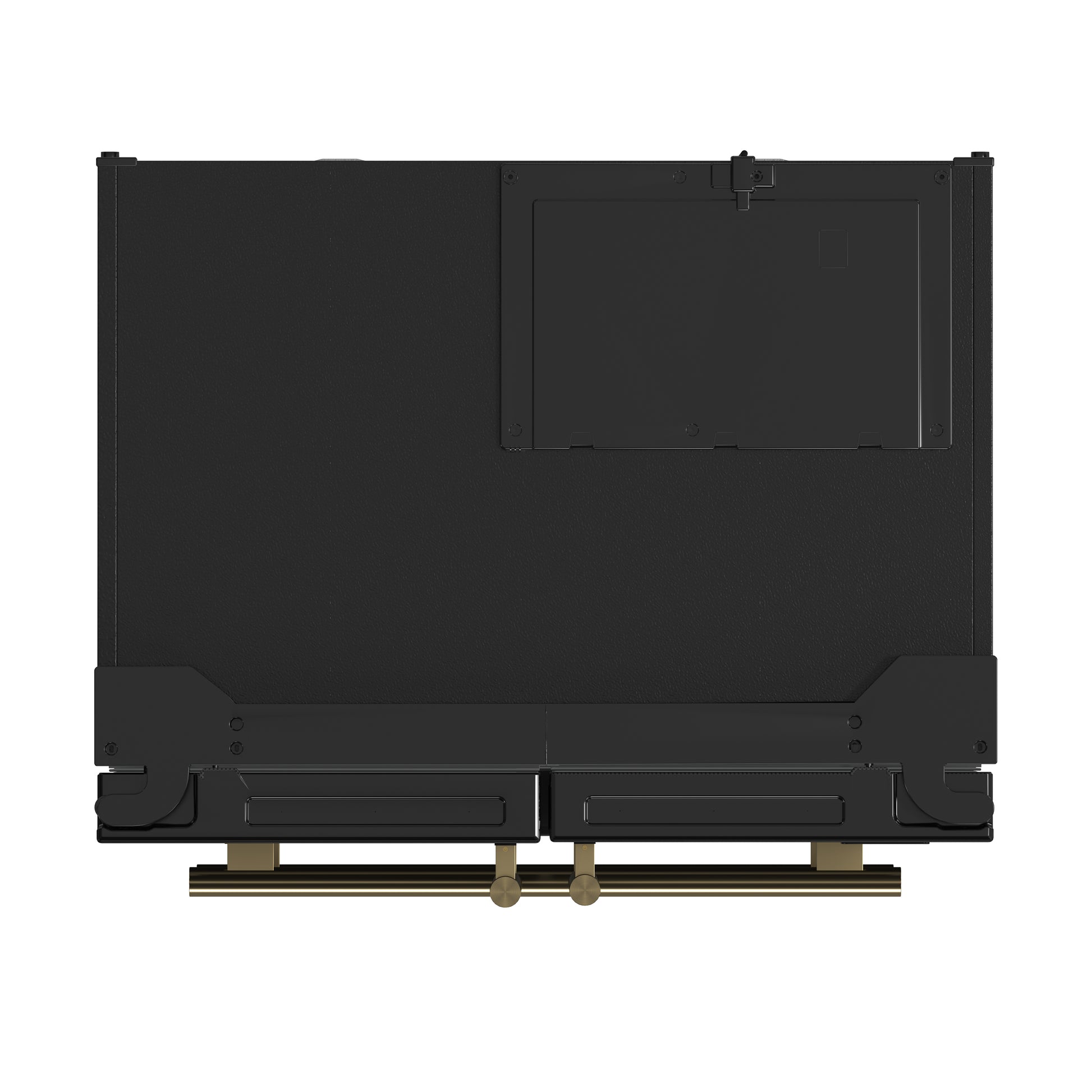 * Sleek black-finished doors with antique brass handles provide a stylish and customizable option.